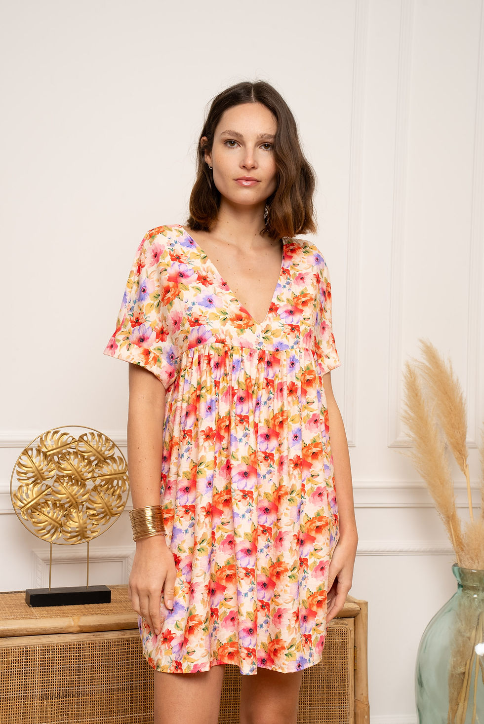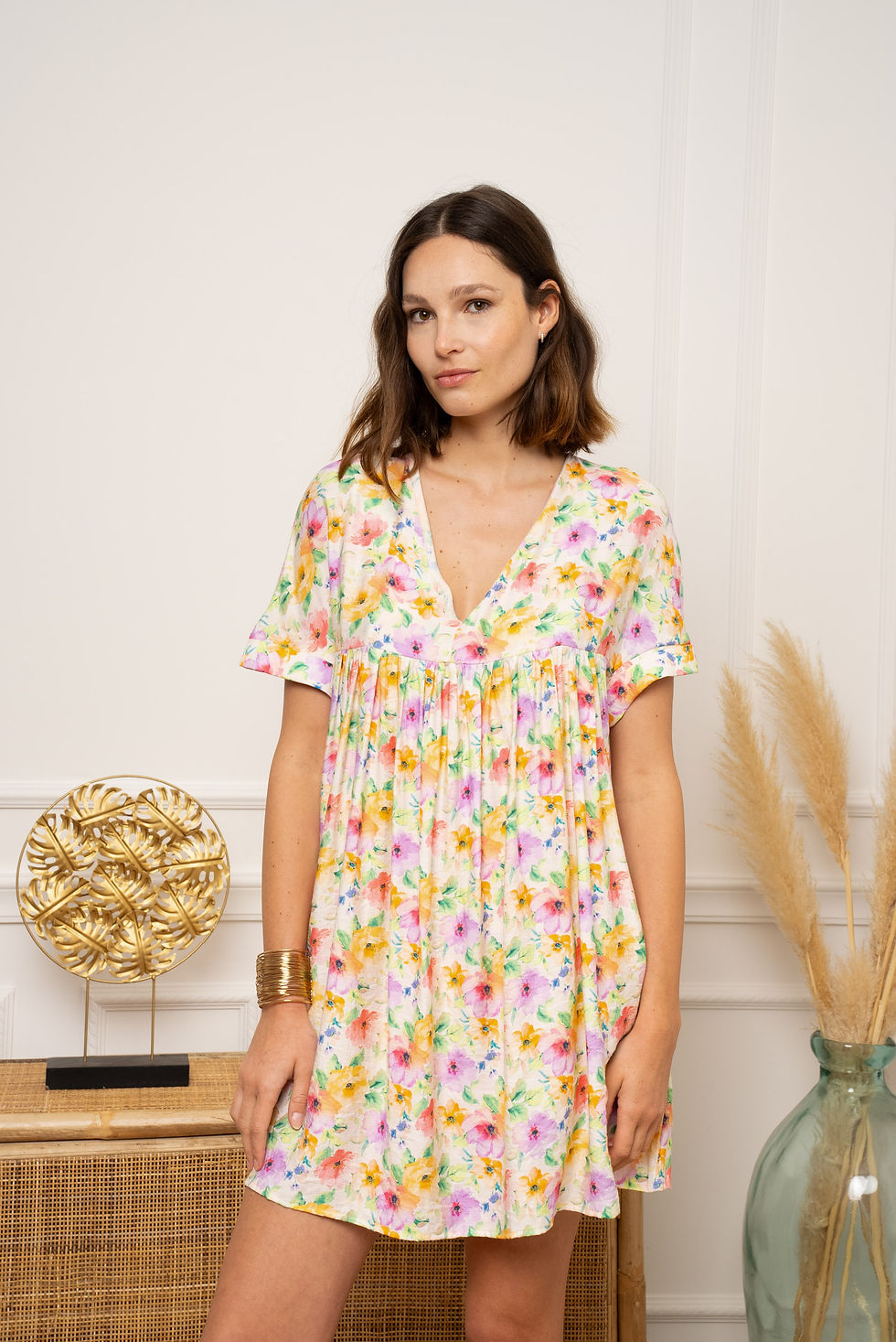 Robe de cocktail plissée buste dentelle et perle - bleu gris